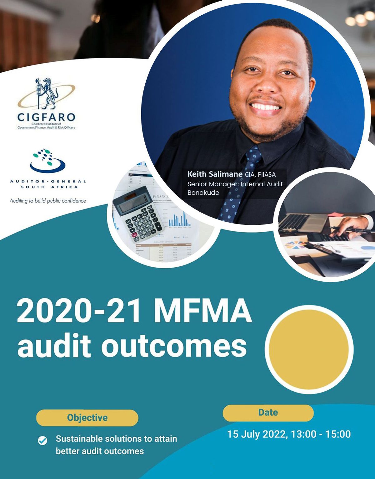 CIGFARO Professional Body in partnership with Auditor-General of South Africa is hosting a 2020-21 MFMA Audit Outcomes Online Session which is focusing on the role that each stakeholder can play in support of the AGSA’s new strategy #cultureshift2030 which aims to encourage all parts of the accountability ecosystem to do their part to comply with legislation and policies. Our Senior Manager for Internal Audit, Keith Salimane, is a panelist in this online session, and he will be driving a message of sustainable solutions to attain better audit outcomes.